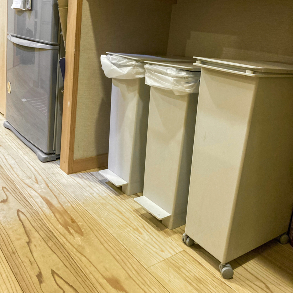 多くの家庭はメインのゴミ箱をキッチンに置いていると思います。我が家は、キッチンに3つのゴミ箱を並べています。