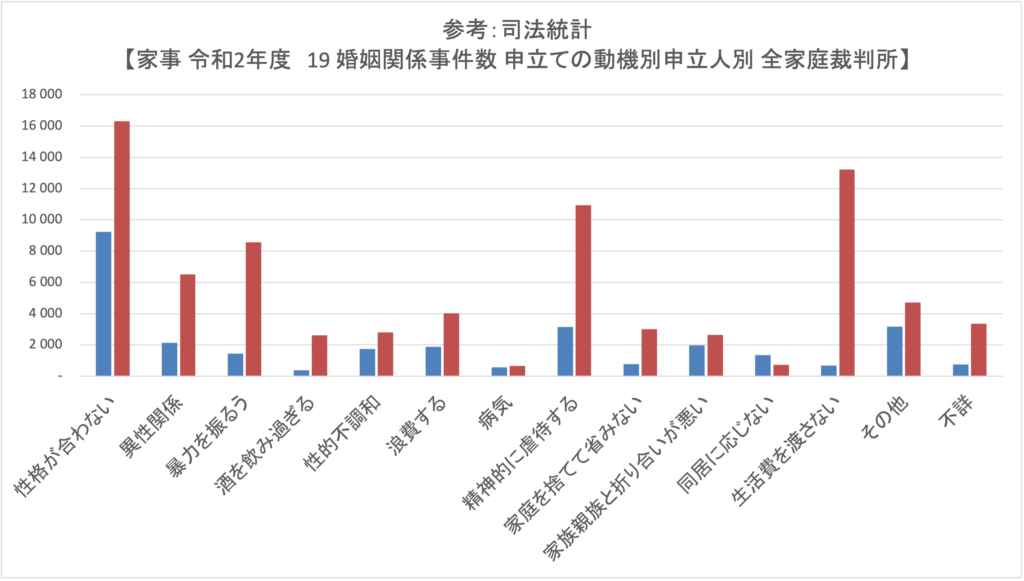 離婚理由の順位、令和2年度 離婚申し立て統計