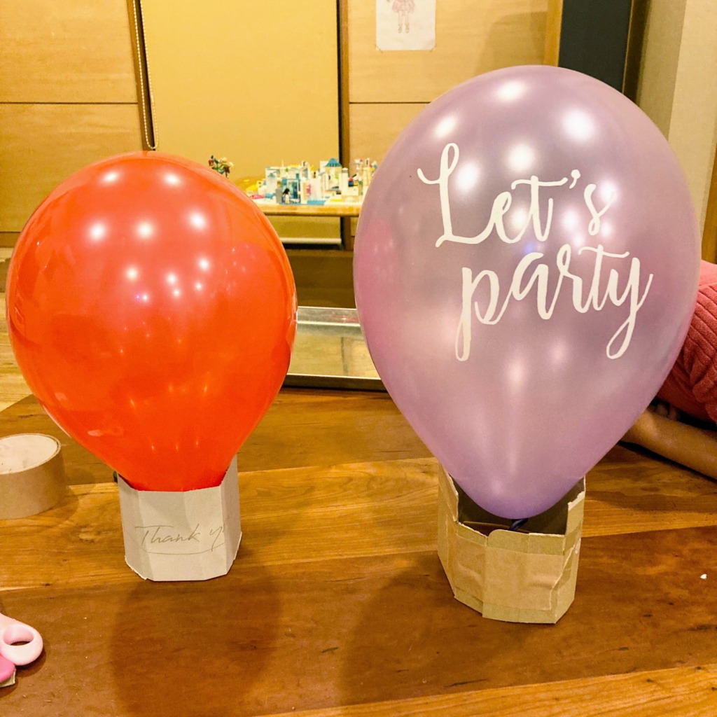 ※これから風船に紙を貼り付けていきますので、風船の上側から重くなっていきます。バランス悪くなり倒れます。なので下側に重りを固定しておきます。