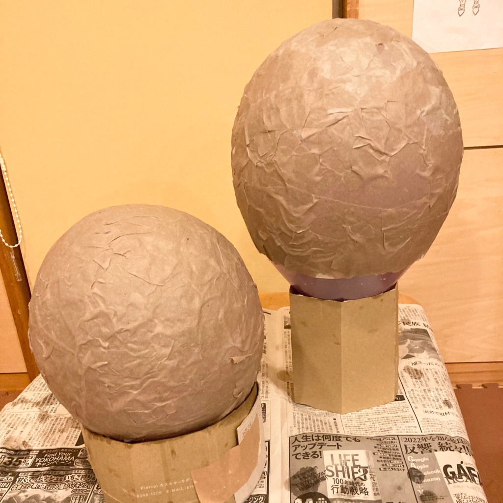 このまま和紙を貼って顔を描いても良いですが、まん丸の風船の形状でこのまま色を付けてもさみしいです。
