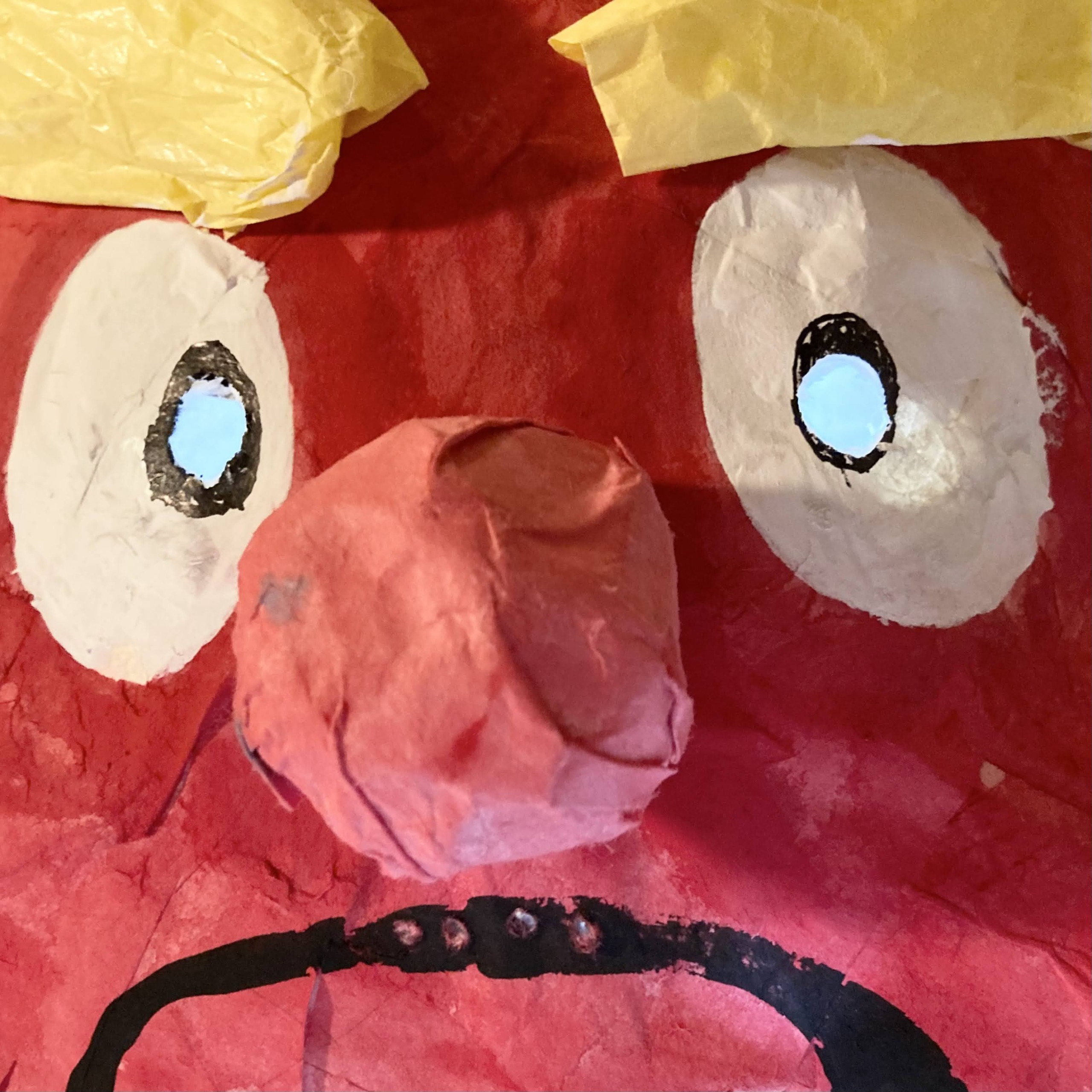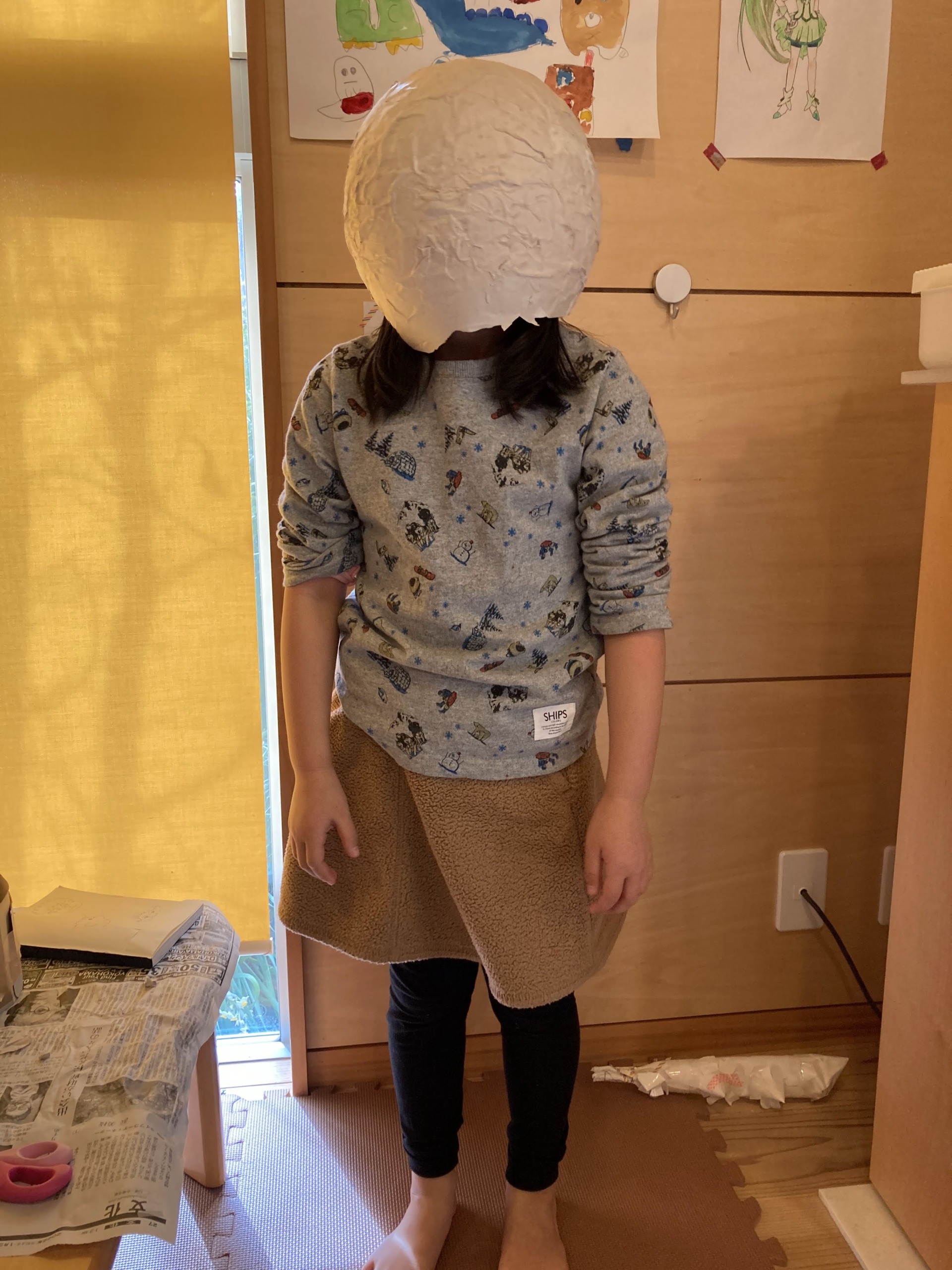 ※実際は風船を割るのはまだ先です。割れてしまったら、お面の内側から風船を膨らませてあげればOK。