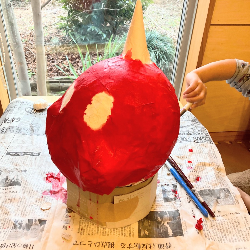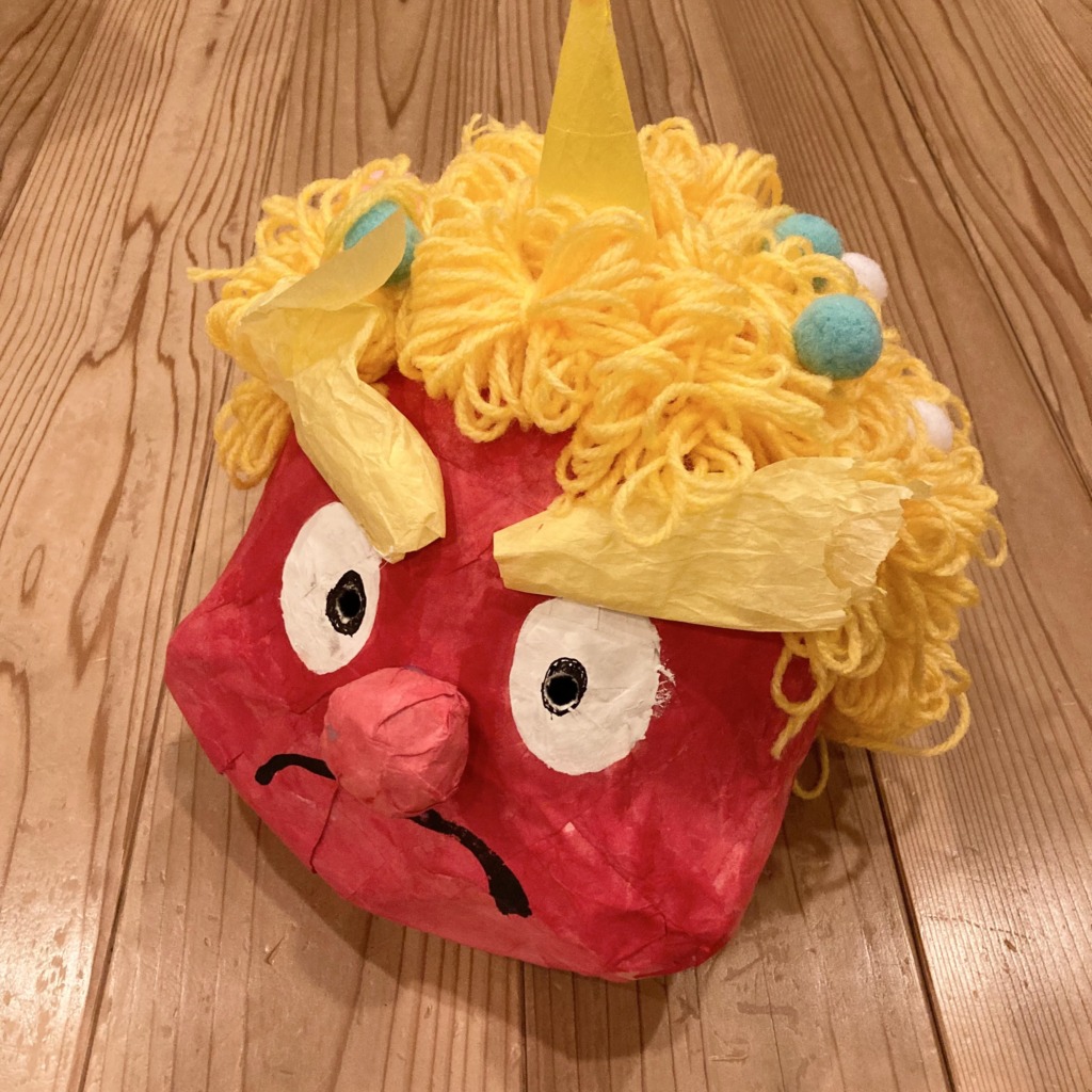 手作りでオリジナルの鬼の被り物のお面の制作解説。