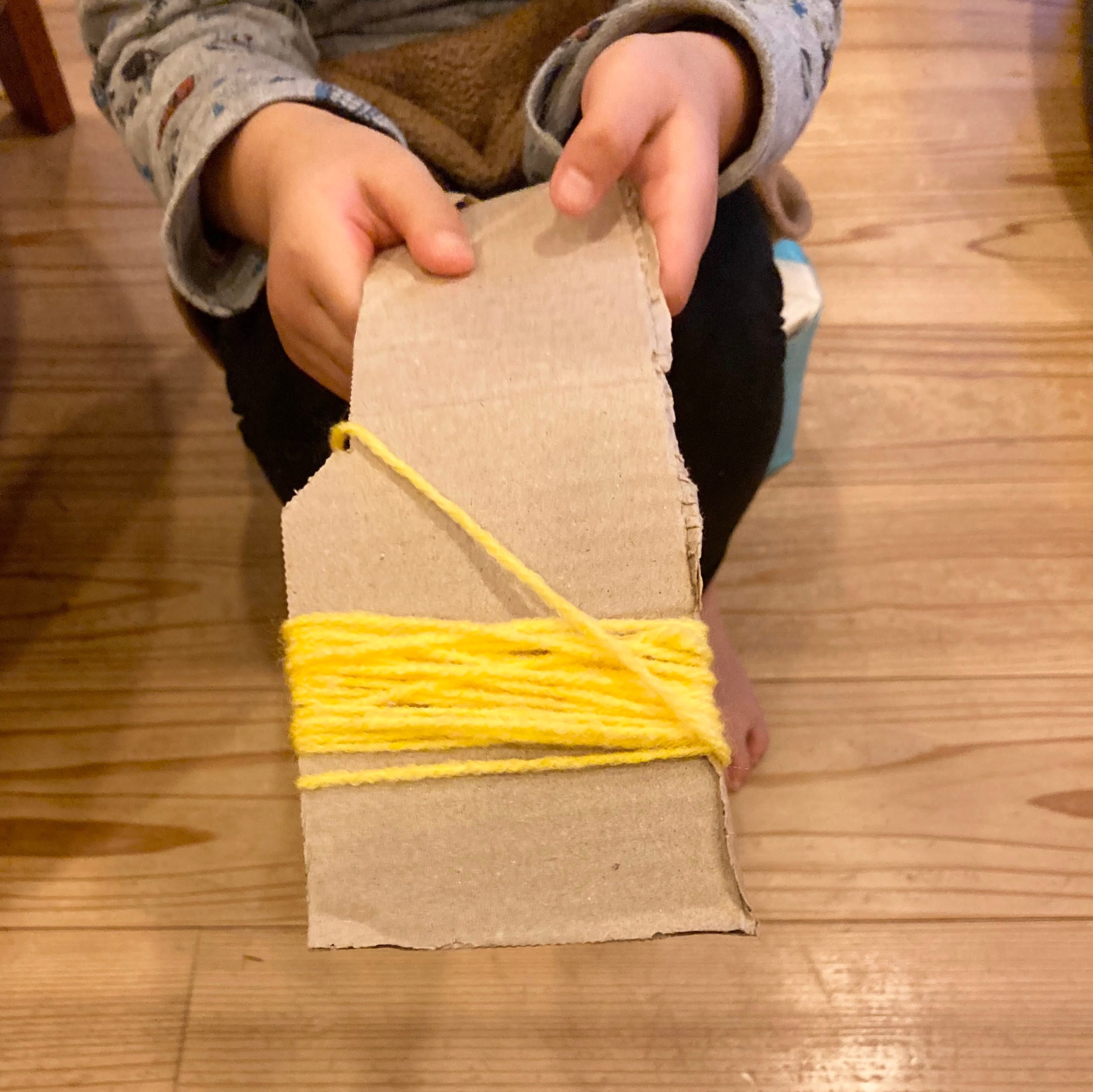 子供の手は小さいので段ボールで巻き付け道具を作りました。