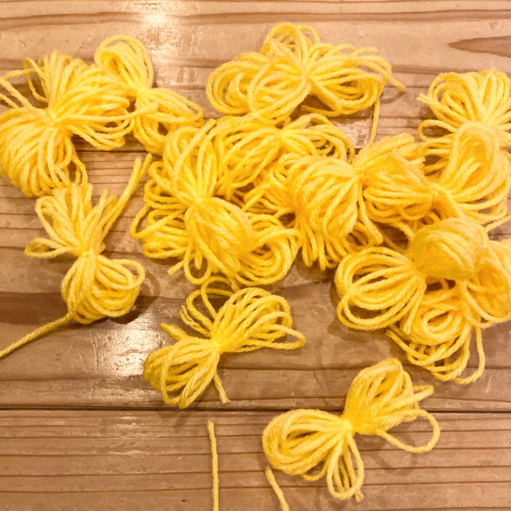 アフロっぽい鬼にするため、束ねた毛糸を貼り付けることにしました。