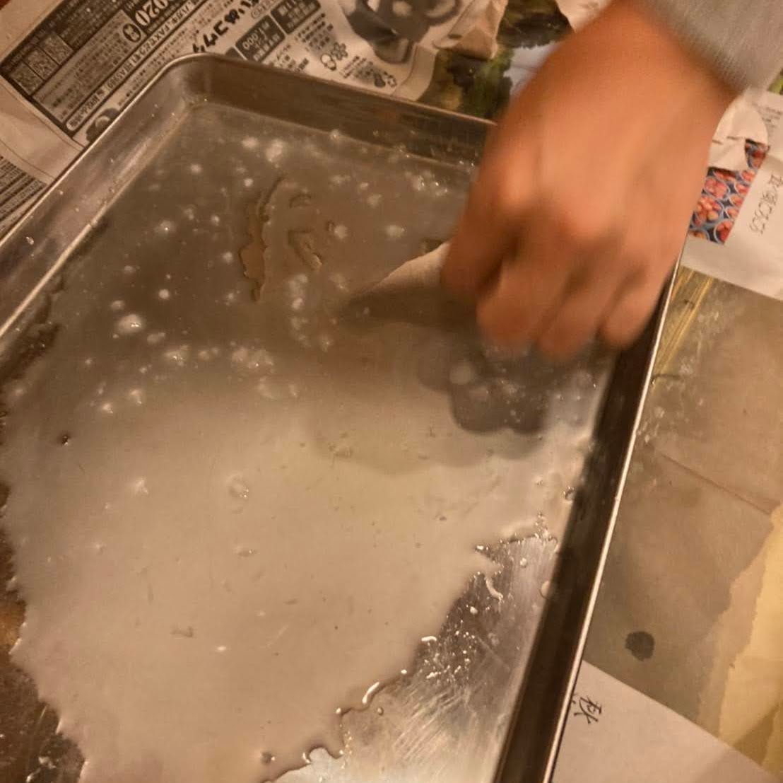 やまとのりを薄めて作る。溶かし易いようにお湯で2倍から3倍に薄める。