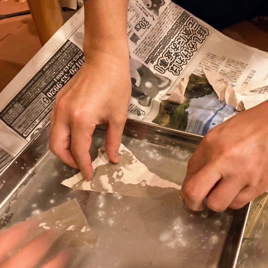 下地を貼った時の同じ様(工程2 から工程4 )に、和紙を貼っていきます。