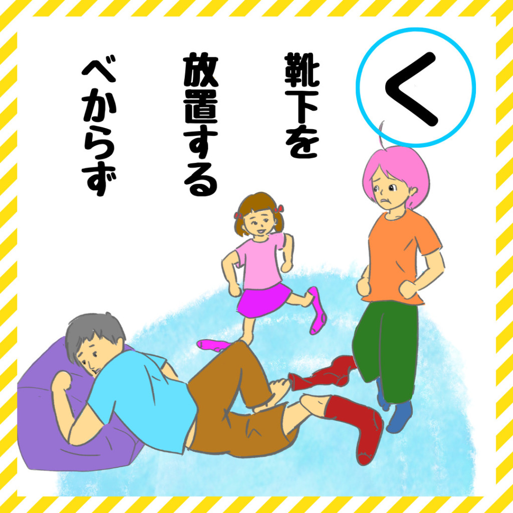 - 靴下はちゃんと洗濯物かごにいれる。